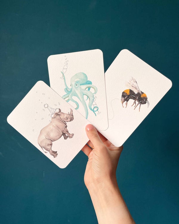 Vliegt er iemand uit? Uit het ouderlijk huis, of een nieuwe baan? Of misschien wil je iemand sterkte wensen met een groot verlies? De zoemende Bij is een mooi passend kaartje.